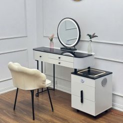 Bàn trang điểm thông minh là mẫu bàn được thiết kế đa năng, tích hợp nhiều công năng trong cùng một sản phẩm. Không chỉ là nơi makeup, làm đẹp, bàn còn có thể kết hợp với gương gấp, ngăn kéo chứa đồ, đèn LED, thậm chí kiêm bàn làm việc hoặc bàn học. Nhờ đó, mẫu bàn trang điểm thông minh BTM01 này đang trở thành lựa chọn hàng đầu cho các căn hộ chung cư và phòng ngủ hiện đại.