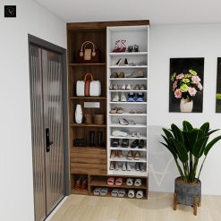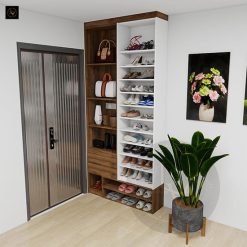 Tủ giày kịch trần là mẫu tủ được thiết kế cao chạm đến trần nhà, tận dụng tối đa chiều cao không gian để lưu trữ. Không chỉ đơn thuần là nơi cất giữ giày dép, tủ còn được kết hợp với nhiều công năng khác như gương soi, móc treo, kệ trang trí… mang lại sự tiện nghi và sang trọng cho ngôi nhà. Hãy cùng chúng tôi tìm hiểu mẫu tủ giày kịch trần TGKT01 đang được ưu chuộng hiện nay