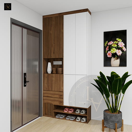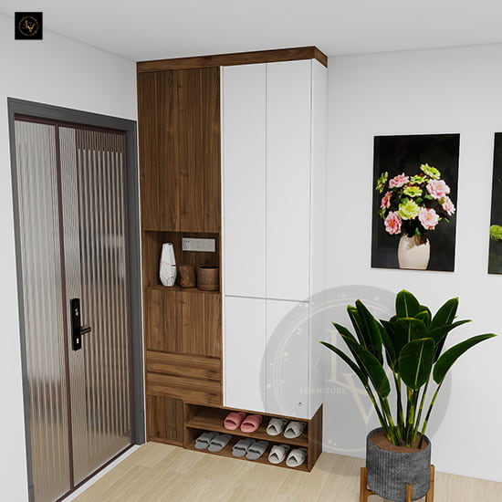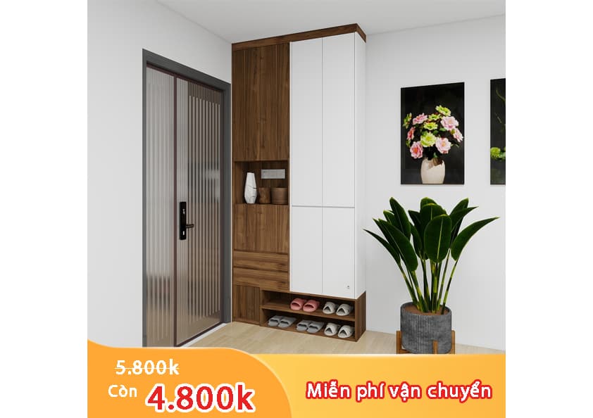 Tủ giày kịch trần là mẫu tủ được thiết kế cao chạm đến trần nhà, tận dụng tối đa chiều cao không gian để lưu trữ. Không chỉ đơn thuần là nơi cất giữ giày dép, tủ còn được kết hợp với nhiều công năng khác như gương soi, móc treo, kệ trang trí… mang lại sự tiện nghi và sang trọng cho ngôi nhà. Hãy cùng chúng tôi tìm hiểu mẫu tủ giày kịch trần TGKT01 đang được ưu chuộng hiện nay